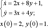 Материальная точка массы m совершает прямолинейное колебание по оси Ox под действием восстанавливающей силы F = -kx, пропорциональной расстоянию x от начала координат и направленной к началу координат, и возмущающей силы ƒ = Acost. Найти закон движения x = x(t) точки, если в начальный момент времени x(0) = x0, υ(0) = υ0