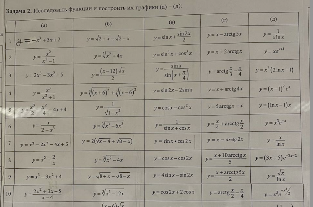 ДЗ 2: Приложения дифференциального исчисления вариант 10