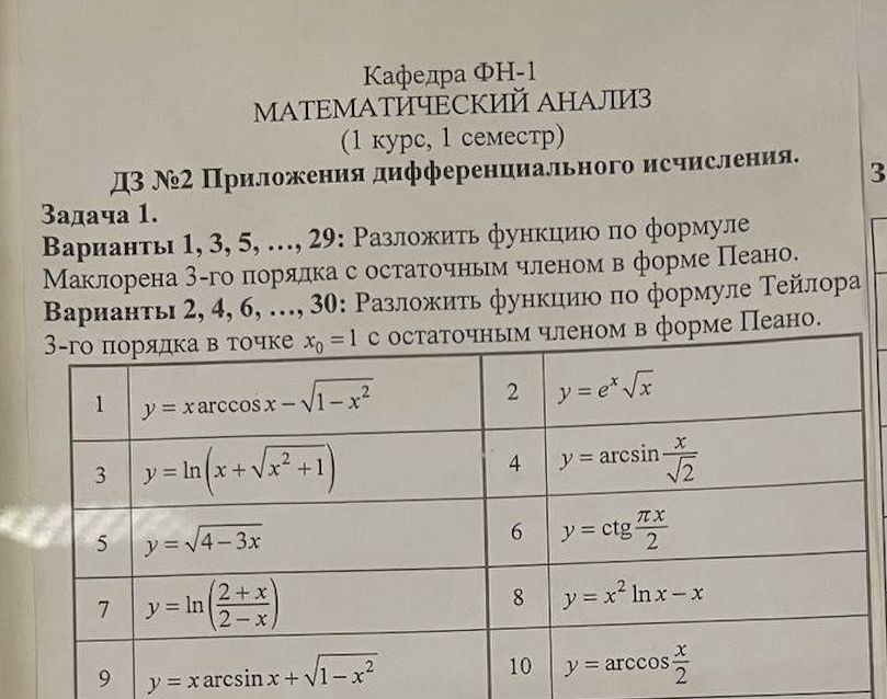 Решенное на макс. балл и проверенное преподавателем домашнее задание по матанализу "Приложения дифференциального исчисления". 10 вар. 1 семестр 1 курс МГТУ