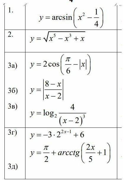 ДЗ 1.1: Элементарные функции и их графики вариант 4