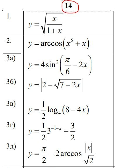 ДЗ 1.1: Элементарные функции и их графики вариант 14