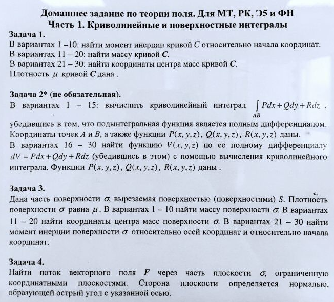 Домашнее задание по матан МГТУ 3 семестр типовик теория поля криволинейные кратные поверхностные интегралы.
