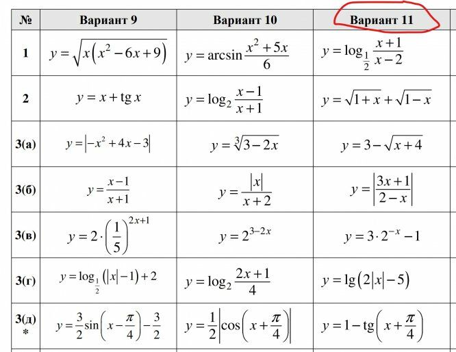 ДЗ 1.1: Элементарные функции и их графики вариант 11