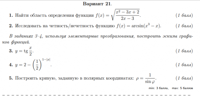 Вариант 21 - ДЗ №1 - Элементарные функции и их графики- ИУ,РЛ,БМТ,ФН12