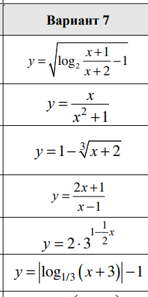 ДЗ 1.1: Элементарные функции и их графики вариант 7