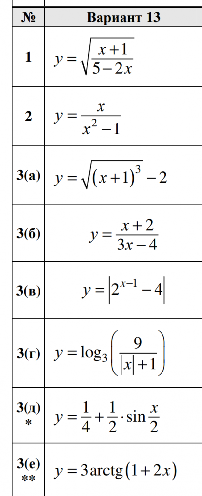 ДЗ 1.1: Элементарные функции и их графики вариант 13