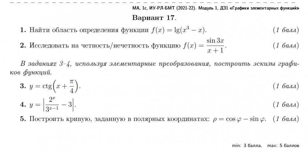 Вариант 17 - ДЗ №1 - Элементарные функции и их графики - ИУ,РЛ,БМТ,ФН12