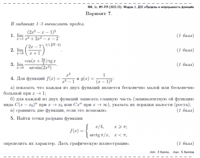 ДЗ 2: Пределы и непрерывность функций вариант 7