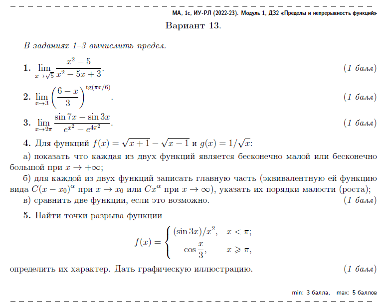 ДЗ 2: Пределы и непрерывность функций вариант 13