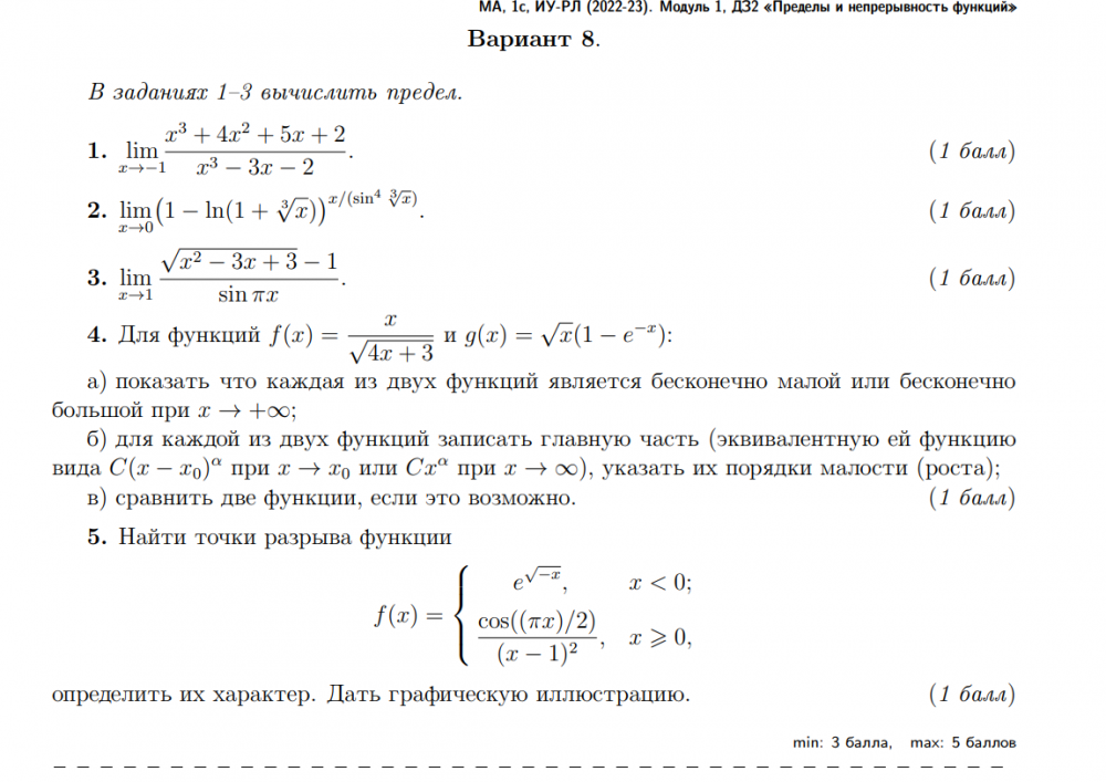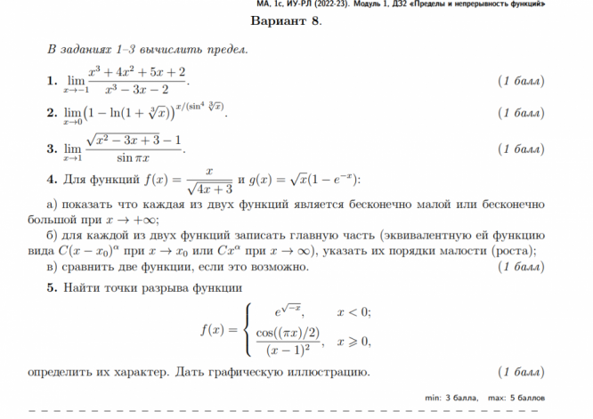 ДЗ 2: Пределы и непрерывность функций вариант 8