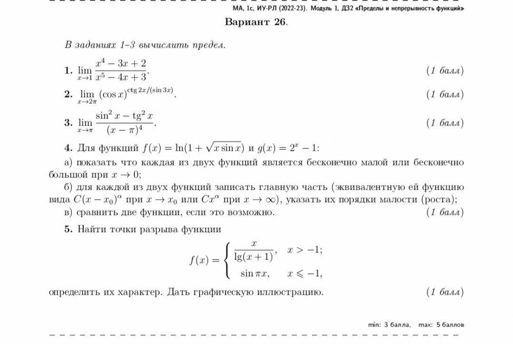 РЕШЕНИЕ ДЗ №2 - ПРЕДЕЛЫ И НЕПРЕРЫВНОСТЬ ФУНКЦИЙ (5 задач)