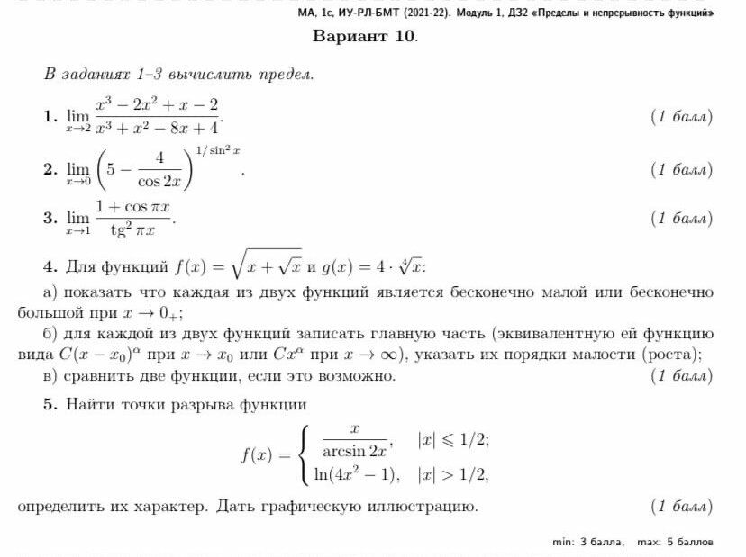 ДЗ 2: Пределы и непрерывность функций вариант 10