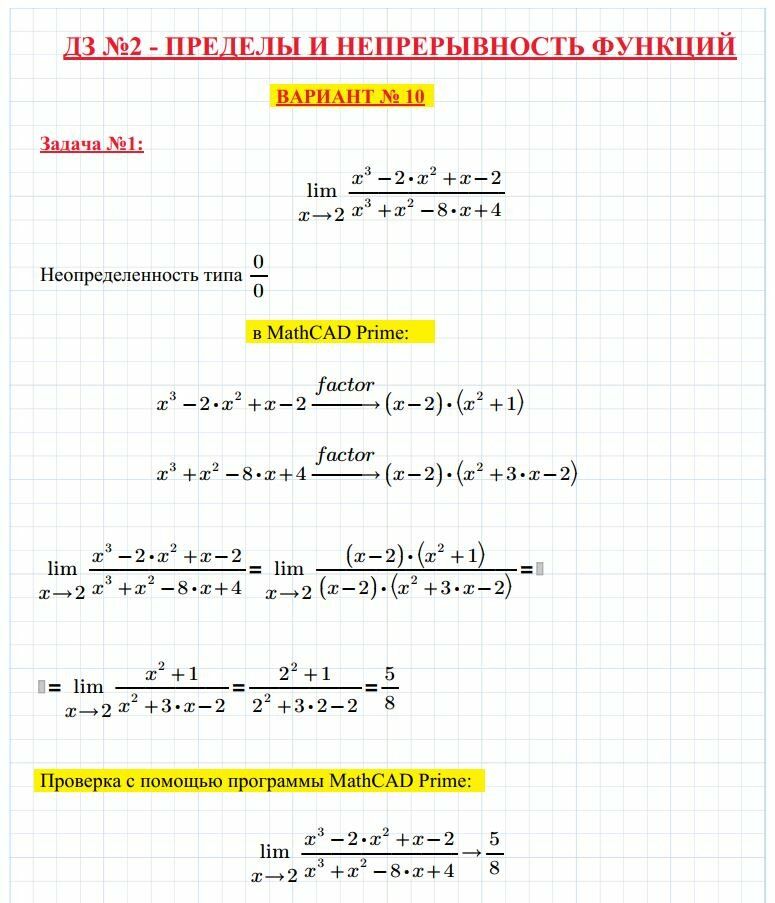 РЕШЕНИЕ ДЗ №2 - ПРЕДЕЛЫ И НЕПРЕРЫВНОСТЬ ФУНКЦИЙ (5 задач)