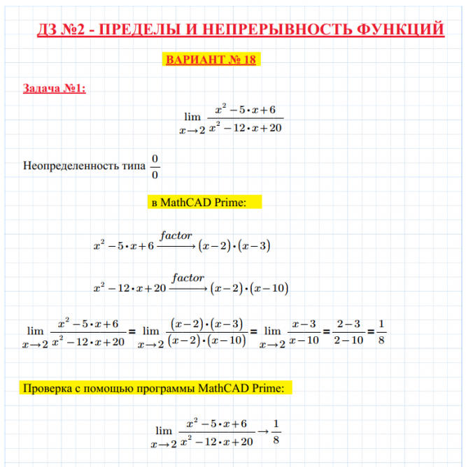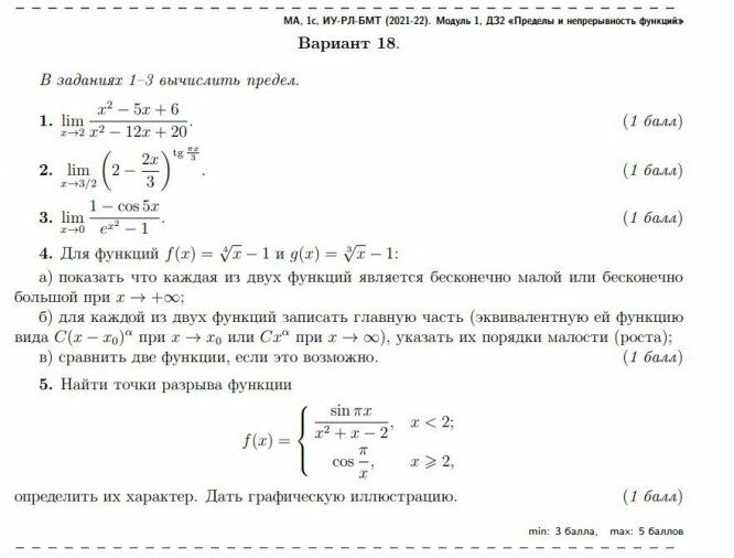 ДЗ 2: Пределы и непрерывность функций вариант 18