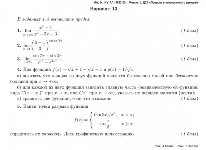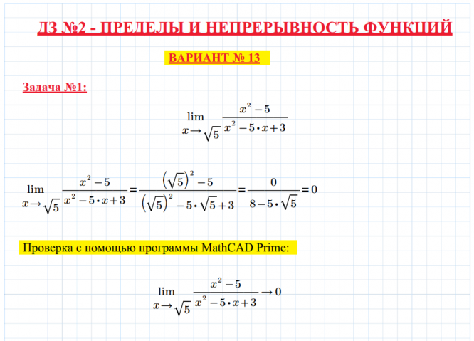 ДЗ 2: Пределы и непрерывность функций вариант 13
