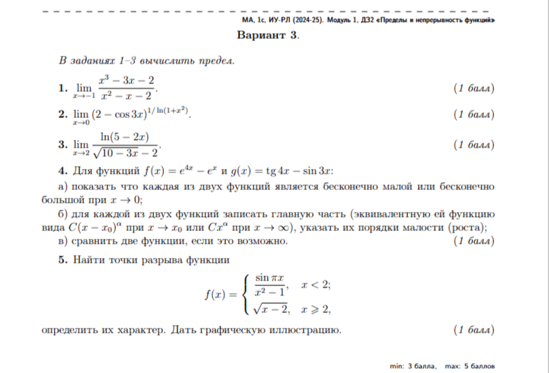 ДЗ 2: Пределы и непрерывность функций вариант 3