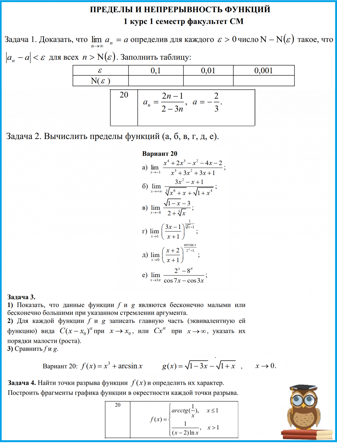ДЗ 1.2: Пределы и непрерывность функций вариант 20