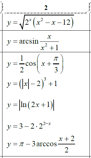 ДЗ 1.1: Элементарные функции и их графики вариант 2
