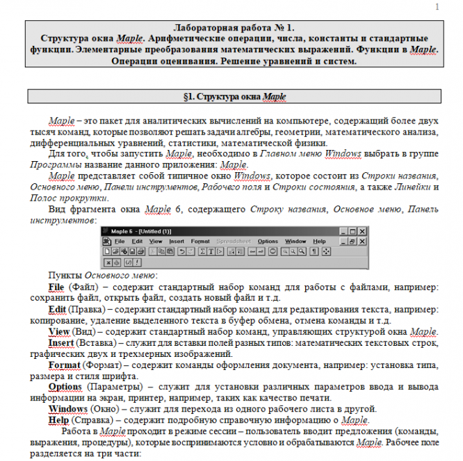 Главная » Учебные материалы » Математический анализ » Лабораторные работы » НИУ «МЭИ» » 1 семестр » Номер 1 » Структура окна Maple. Арифметические операции, числа, константы и стандартные функции. Элементарные преобразования математических выражений. Функции в Maple. Операции оценивания. Решение уравнений и систем