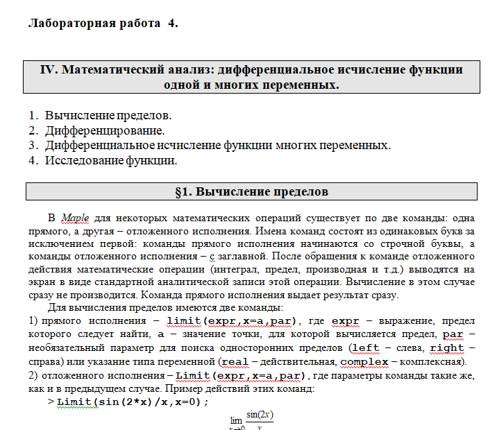 Лабораторная работа 3: Математический анализ: дифференциальное исчисление функции одной и многих переменных.