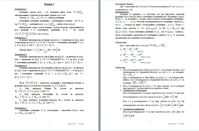 Для студентов МГУ им. Ломоносова по предмету Математический анализЛекции в вордеЛекции в ворде