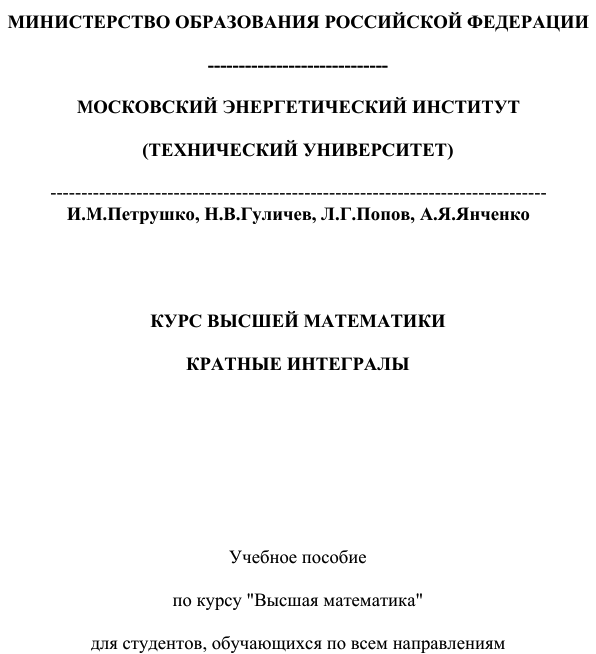 Главная » Учебные материалы » Математический анализ » Лекции » ИДДО НИУ «МЭИ» » 3 семестр » И.М. Петрушко, Н.В. Гуличев, Л.Г. Попов, А.Я. Янченко - Лекции ИДДО