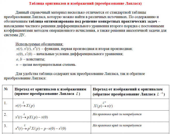 Лекции: Таблица оригиналов и изображений (преобразование Лапласа)
