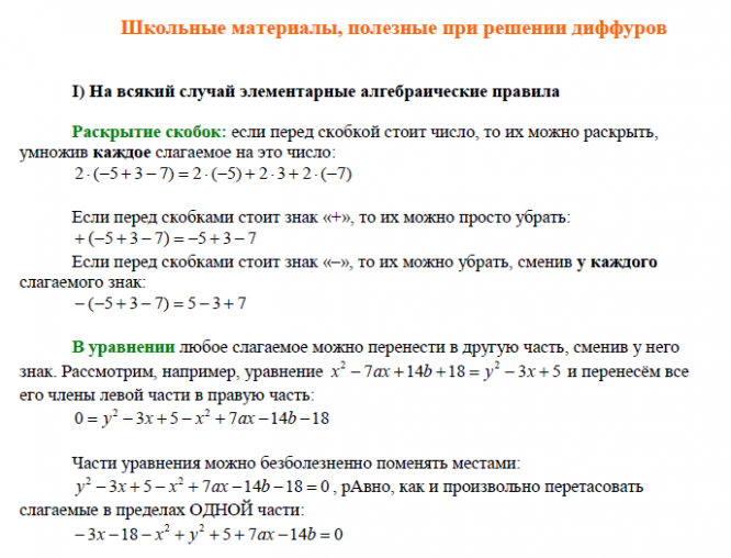 Главная » Учебные материалы » Математический анализ » Лекции » НИУ «МЭИ» » 3 семестр » Школьные материалы, полезные при решении диффуров