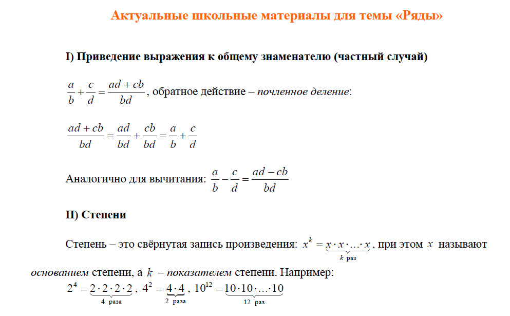 Для студентов НИУ «МЭИ» по предмету Математический анализАктуальные школьные материалы для темы РядыАктуальные школьные материалы для темы Ряды