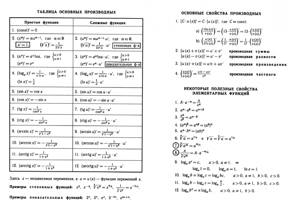Лекции: Таблица основных производных
