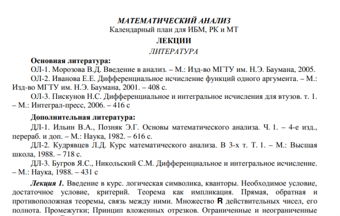 Для студентов МГТУ им. Н.Э.Баумана по предмету Математический анализКалендарный план. ЛекцииКалендарный план. Лекции