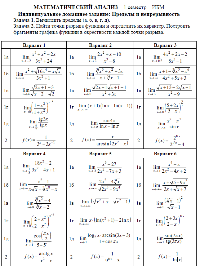 Вопросы/задания к заданиям 1.1: Пределы и непрерывность функций
