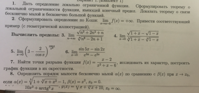 Для студентов МГТУ им. Н.Э.Баумана по предмету Математический анализБилеты к РК №1 2019 годаБилеты к РК №1 2019 года