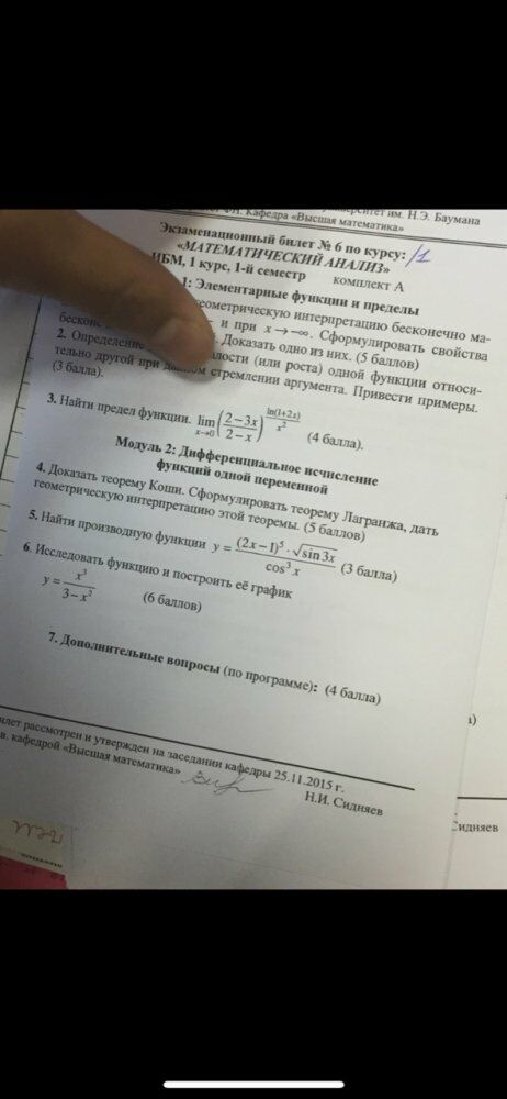 Для студентов МГТУ им. Н.Э.Баумана по предмету Математический анализЭкзамен – Практика Билет 6Экзамен – Практика Билет 6