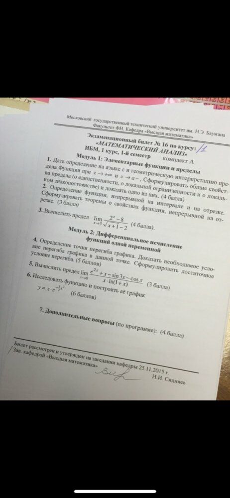 Для студентов МГТУ им. Н.Э.Баумана по предмету Математический анализЭкзамен – Практика Билет 16Экзамен – Практика Билет 16