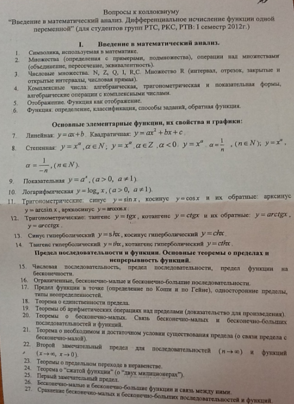 Для студентов НГТУ по предмету Математический анализВопросы к коллоквиумуВопросы к коллоквиуму 2021-04-01СтудИзба