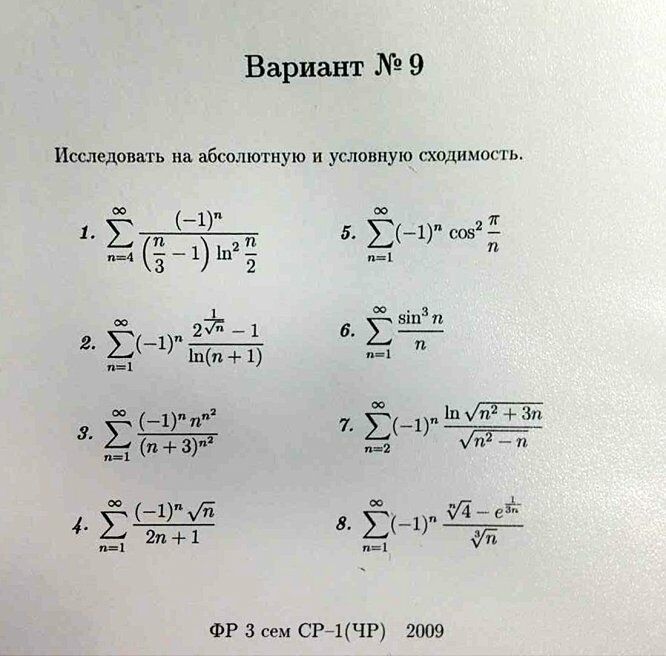 Для студентов НИЯУ МИФИ по предмету Математический анализВторая контрольная работа по рядам (билеты)Вторая контрольная работа по рядам (билеты)