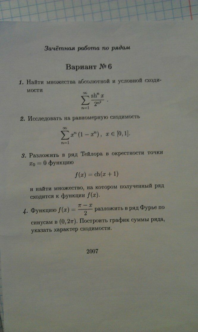 Для студентов НИЯУ МИФИ по предмету Математический анализВторая зачетная работа по рядам (билеты)Вторая зачетная работа по рядам (билеты)