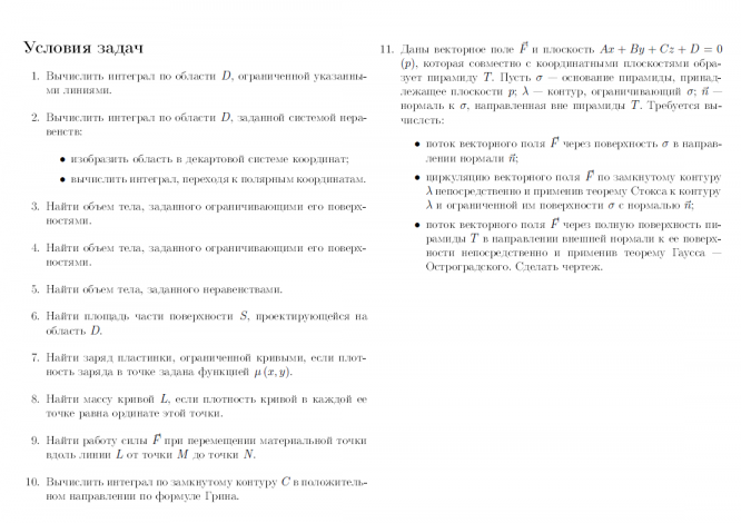 Главная » Учебные материалы » Математический анализ » Вопросы/задания » НГТУ » 2 семестр » К заданиям » Условие ТР - Кратные и криволинейные интегралы