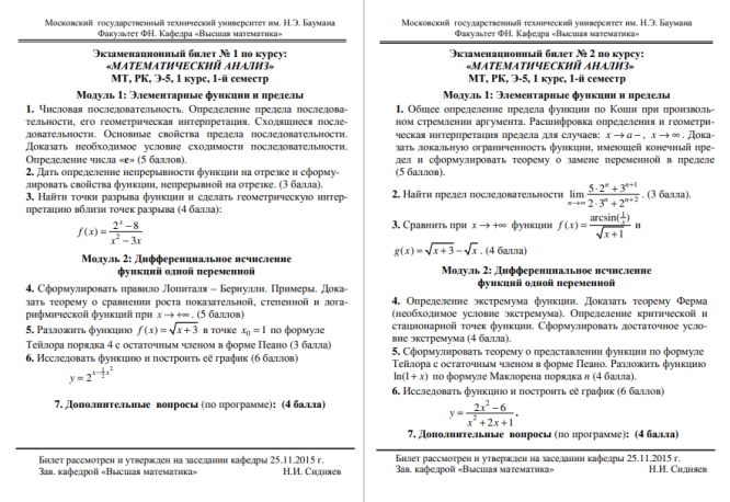 Для студентов МГТУ им. Н.Э.Баумана по предмету Математический анализЭкзаменационные билеты (26)Экзаменационные билеты (26)