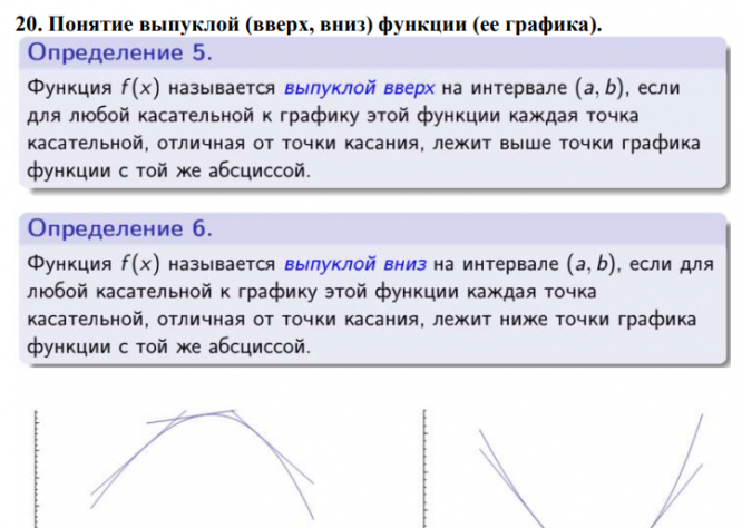 20. Понятие выпуклой (вверх, вниз) функции (ее графика).