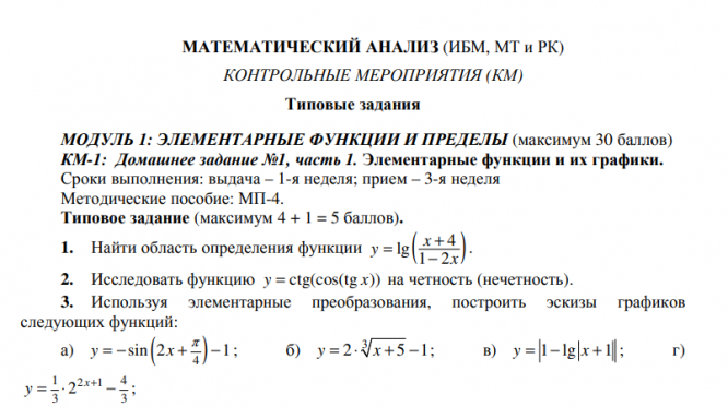 Для студентов МГТУ им. Н.Э.Баумана по предмету Математический анализТиповые задания контрольных мероприятийТиповые задания контрольных мероприятий