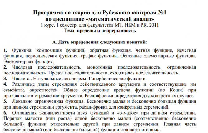 Для студентов МГТУ им. Н.Э.Баумана по предмету Математический анализПрограмма по теории 1-ого рубежного контроляПрограмма по теории 1-ого рубежного контроля