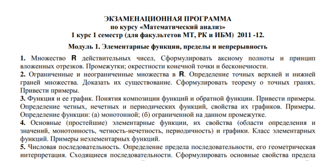 Для студентов МГТУ им. Н.Э.Баумана по предмету Математический анализЭкзаменационная программаЭкзаменационная программа