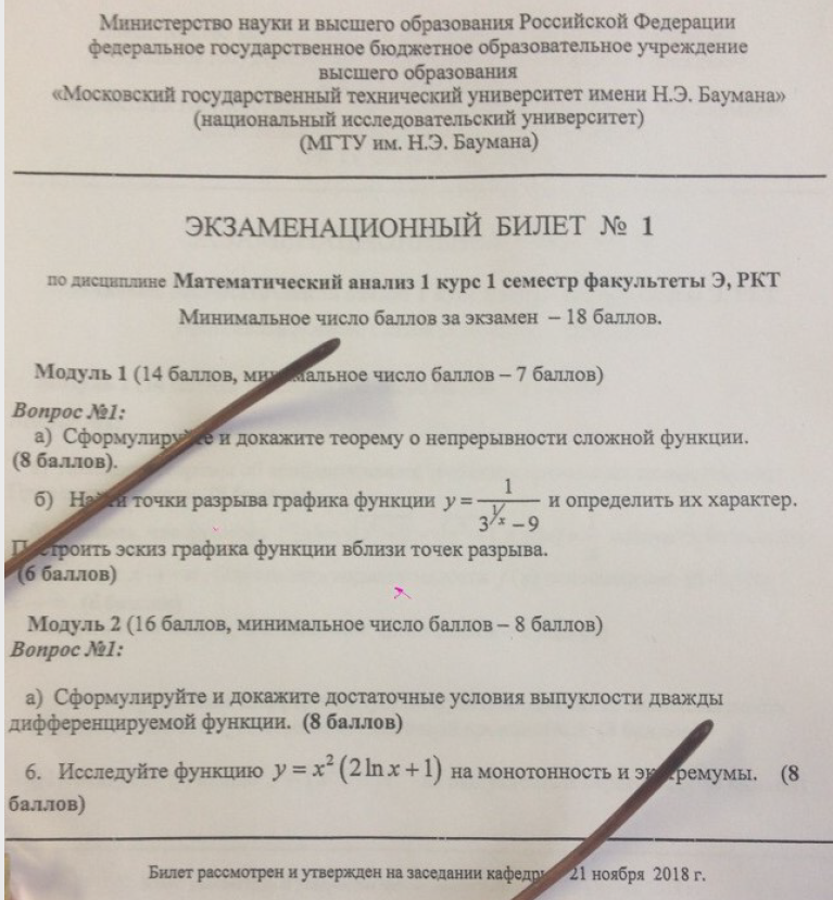 Для студентов МГТУ им. Н.Э.Баумана по предмету Математический анализЭкзаменационные билеты для Э и РКТЭкзаменационные билеты для Э и РКТ