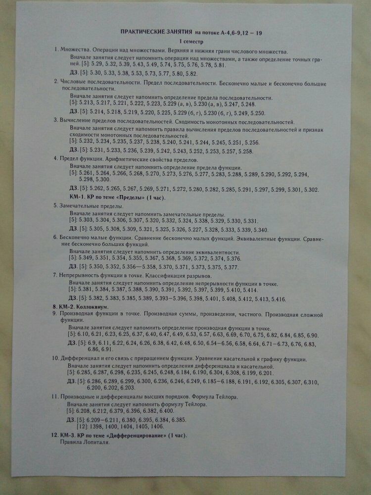 Для студентов НИУ «МЭИ» по предмету Математический анализПлан семинаровПлан семинаров