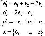 Найти координаты вектора X в базисе (e'1, e'2, e'3), если он задан в базисе (e1, e2, e3):