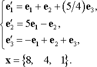 Найти координаты вектора X в базисе (e'1, e'2, e'3), если он задан в базисе (e1, e2, e3):