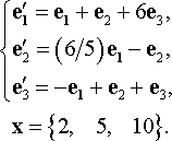 Найти координаты вектора X в базисе (e'1, e'2, e'3), если он задан в базисе (e1, e2, e3):