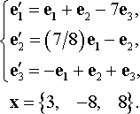 Найти координаты вектора X в базисе (e'1, e'2, e'3), если он задан в базисе (e1, e2, e3):